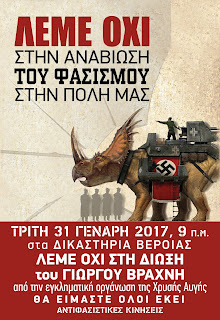 Καλούμαστε όλοι να παραστούμε στις 31 Ιανουαρίου 2017, στα Δικαστήρια, στη Βέροια, για να συμπαρασταθούμε στον αντιφασίστα Γιώργο Βραχνή που ταλαιπωρείται επί σειρά ετών.